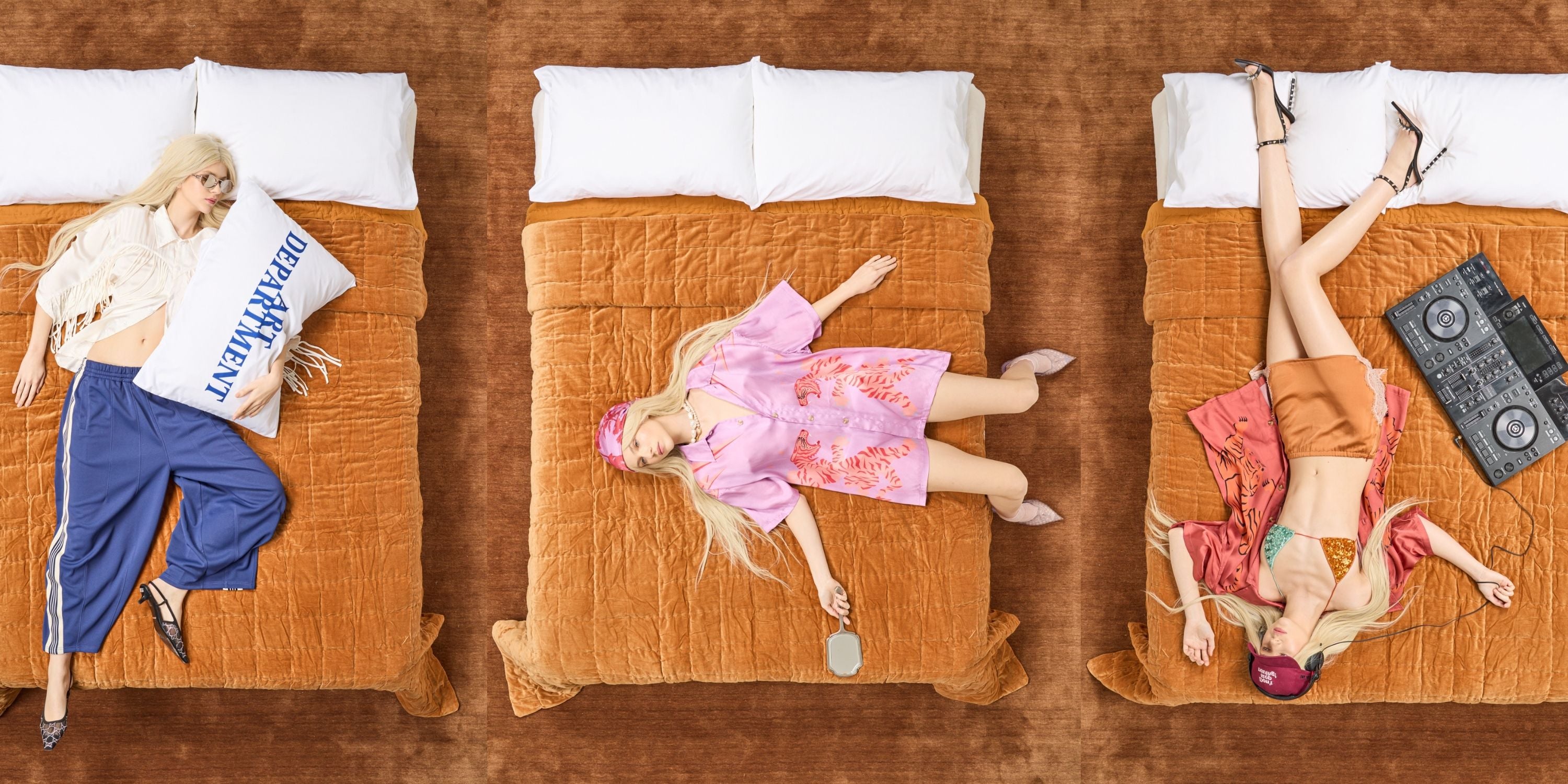 Come To Bed With Us — a confident collision of British cool-girl nonchalance and sun-soaked attitude. The collection weaves western, sports and tropical details through contemporary streetwear silhouettes, creating a mood that feels effortless, worn-in, and bold.