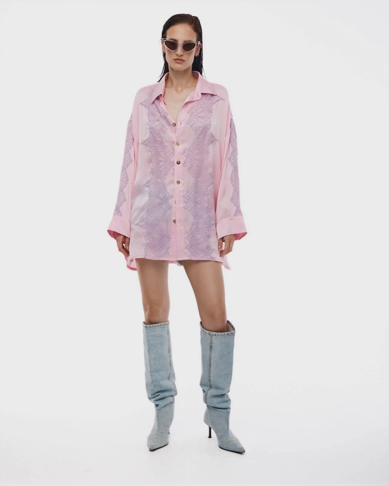 - Satin oversized longline shirt